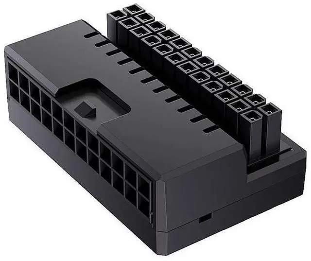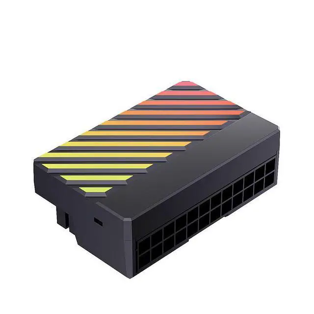 The SOEWIOU 24-pin right-angle adapter is designed to optimize the internal wiring of your PC case, making it an essential tool for DIY enthusiasts and PC builders. Featuring a 90° horizontal outlet, this adapter streamlines cable management by allowing cables to route flat against the motherboard, reducing clutter and supporting improved airflow within the chassis. The insulated housing not only enhances safety but also elevates the visual appeal of your build. Compatible with standard 24-pin ATX connectors, this black 24P-6 adapter includes ARGB support, adding a customizable lighting element to your system. Ideal for those seeking both functional and aesthetic upgrades, this adapter ensures a clean, organized, and professional appearance for any custom PC assembly.