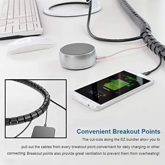 Outlet Design & DIY LengthThe cut-outs along the EZ bundler allow you to pull out the cables from every breakout point, convenient for daily charging or other connecting. At the same time, crowded cables and wires can overheat, even causing the risk of fire. But the breakout points on the bundler provide great ventilation to prevent them from overheating! Flexible material allows DIY length. Turn one 10-foot sleeve into two 5-foot sleeves, or connect multiple sleeves to bun