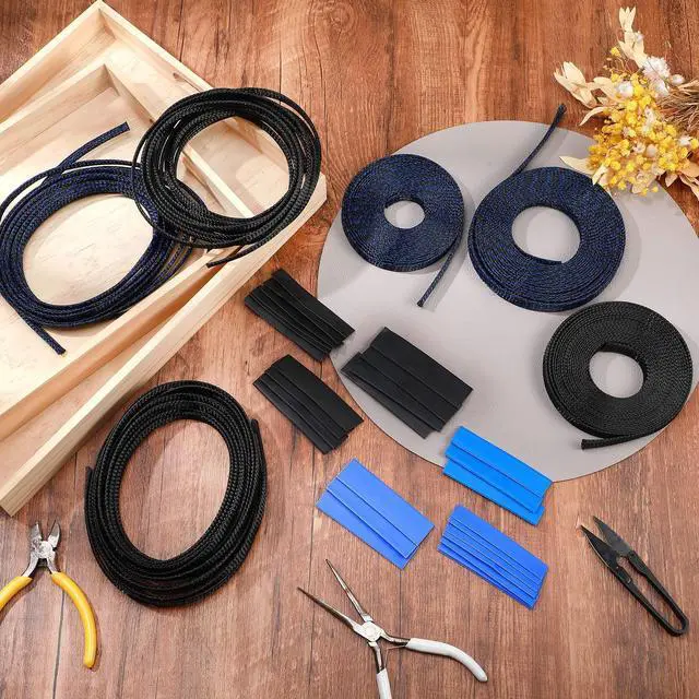 Package includes: there are 6 rolls of expandable braided cable sleeves and 127 pieces heat shrink tubes in the package, each roll is about 5 m/ 16 ft, and the diameter sizes are 1152 x 0.25 x 0.04 inches