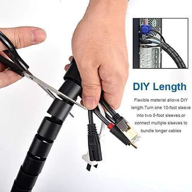 10FT in 120 x 0.55 x 0.04 inches: Each package includes 1 pack of 10 feet cable management sleeve in 0.55 inch diameter. Flexible and soft plastic allows you to trim it to the lengths you need and make multiple sleeves to manage more cords, HDMI and power cables. The 0.55" wide diameter design provides more space for fitting a wide variety of cable gauges which can hold up to 2 TV cables and 4 USB cords! 1 cable wire guide clip is included in the package to help you thread the cables into the tubes easily.