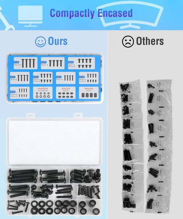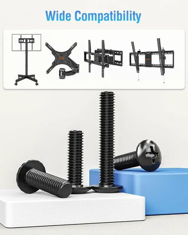 Strong and Durable: This TV mount hardware kit is of high quality. Made of sturdy steel, the screws passed strict quality tests before selling and can help prevent stripping and last longer. Worth your trust in sturdily holding your TV/monitor on the wall mount/stand.
