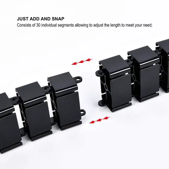The Cable Management Vertebrae features a modular design, with segments that snap together, allowing you to adjust the length to suit your needs.