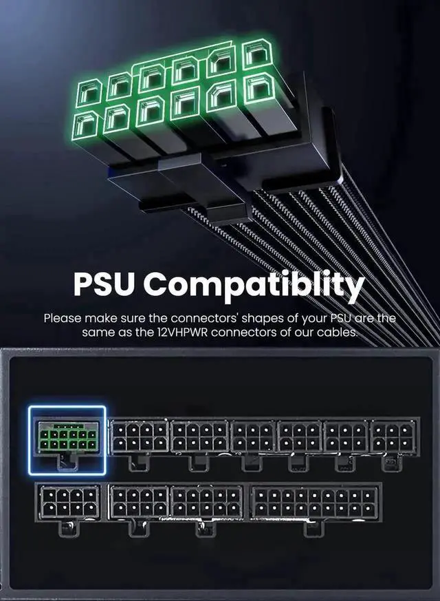1. This cable's 16 pin (12+4) 12VHPWR connector is only suitable for RTX 3090Ti 4070 Ti 4080 4090 and the Modular Power Supply with 12VHPWR port. If you are not sure about this compatibility, please feel free to contact us.