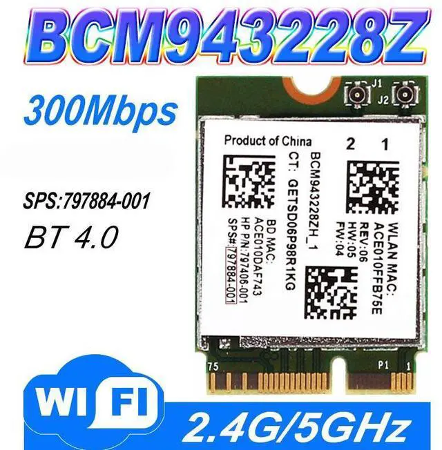 • BCM943228Z Network Adapter PCI Express mini Card (M.2) 802.11 B/A/G/N WIFI CARD 300Mbps 2.4GHz/5GHz BCM943228 BCM43228