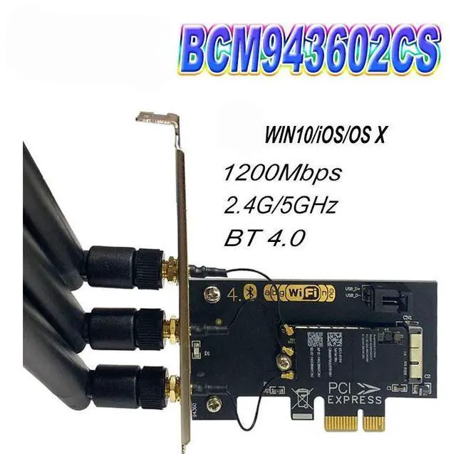 • BCM943602CS Desktop Dual Band 802.11 AC PCI-E Wi-Fi Bluetooth 4.0 WLAN CARD