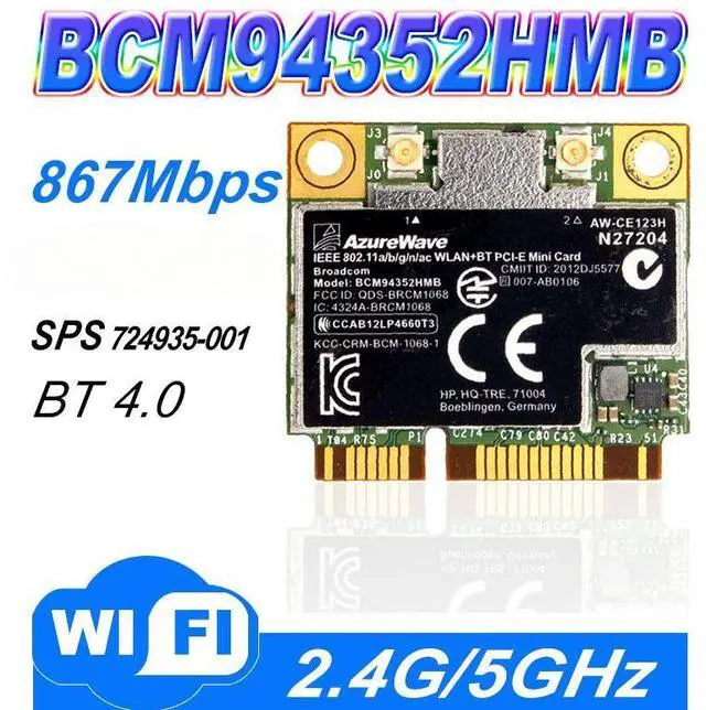 • AzureWave BCM94352HMB 802.11ac 867Mbps Wireless AC WLAN + Bluetooth BT 4.0 Semi-mini PCI-E Wireless Wifi Card AW-CE123H