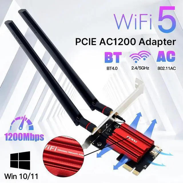 • AC1200 PCIE Adapter, WiFi 5 1200M, BT4.0, 802.11AC, Dual Band 2.4G/5GHz, for Win7/10/11 Desktop