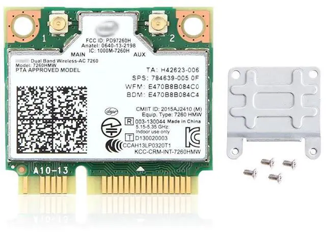 • Wireless Card 7260HMW, Mini PCI-E, Dual Band 2.4G/5Ghz, Bluetooth 4.0, 802.11ac/a/b/g
