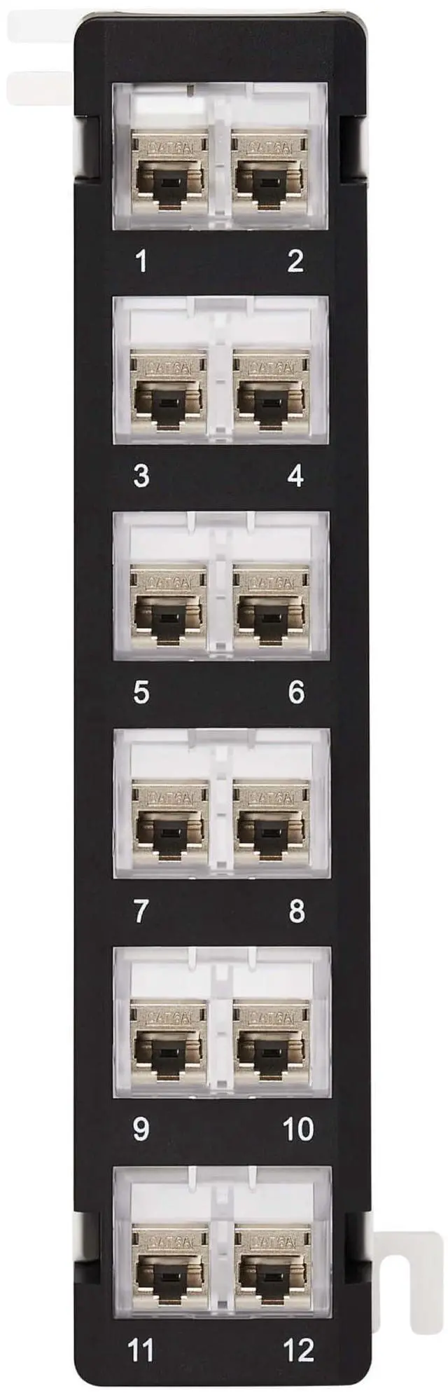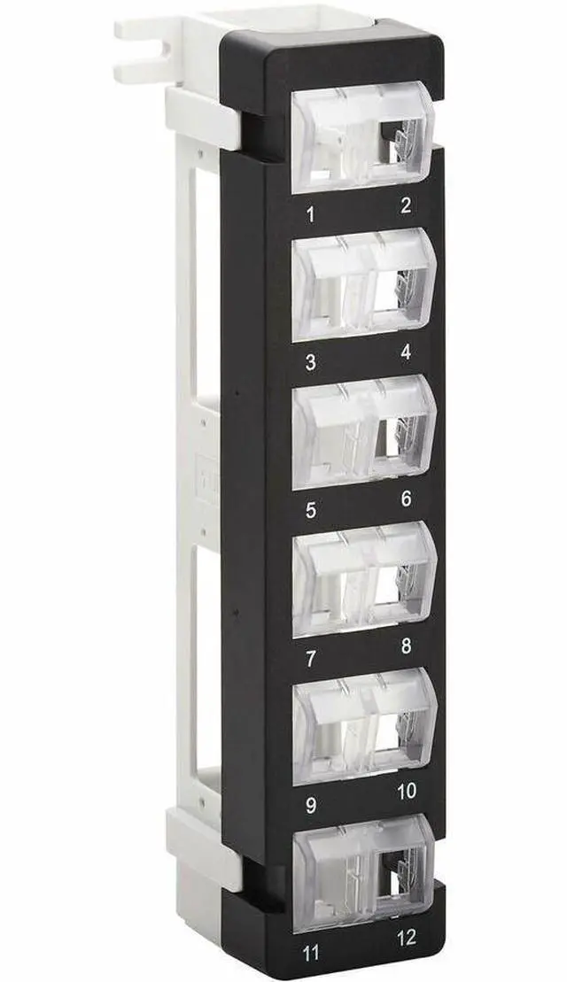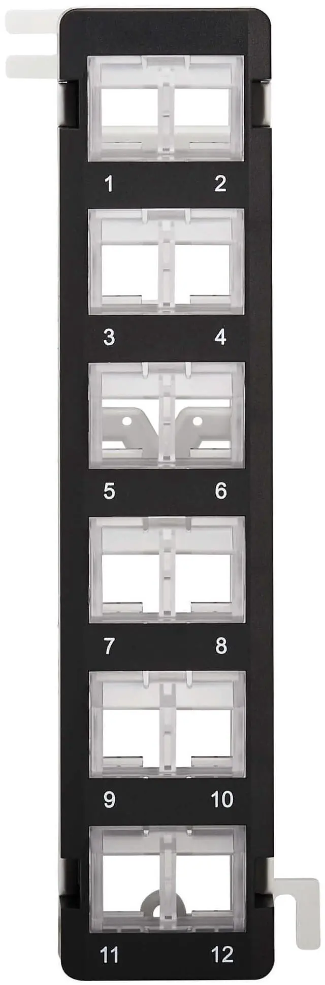 This 12-port patch panel is ideal for small network closets or wall mounting. Twelve blank cutouts accommodate almost any standard keystone jack, including RJ45 Ethernet, HDMI and USB. Ports are numbered to help you identify each connection at a glance.