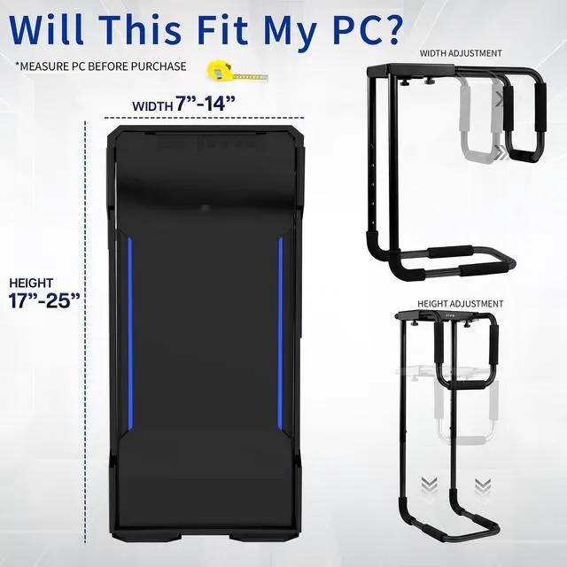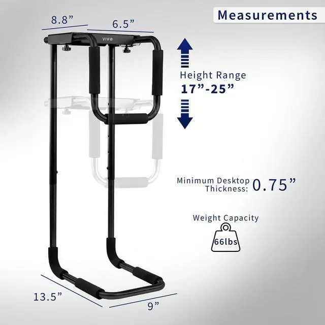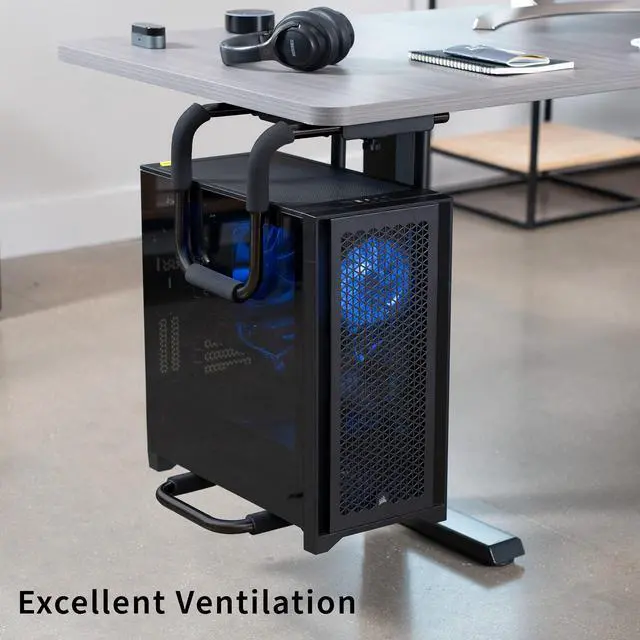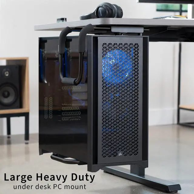 Its time to get your CPU off the floor and mounted to the underside of a desk where its easy to reach and protected with the Black Large Heavy Duty Under Desk PC Mount (MOUNT-PC04B-L) from VIVO! Constructed of high-grade steel, this sturdy PC mount provides a powerful hold for your computer and secures to the underside of a desk or sturdy surface. The heavy-duty frame supports up to 66 pounds and features adjustable height and width for compatibility. Thick inner padding keeps your PC protected from scuffs and scratches, and there is very minimal assembly out of the box for headache-free installation. Enjoy an efficient work layout that maximizes the safety of your valuable hardware!