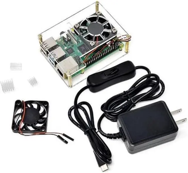 Features: Compatible with Raspberry Pi 4 Model B (USB-C 5V/3A Power Included) Case Compatible with Raspberry Pi 1 Model B+, Pi 2 Model B, Pi 3 Model A+/B/B+, Pi Zero/Zero W, ASUS Tinker Board/Tinker Board S (Micro USB 5V/ 2.5A Power Not Included) 40mm fan and Heat Sinks Kit for Cooling Included Open Frame for Easy Access to Micro-SD, GPIO, Camera CSI, Display DSI Stackable Design for Pi Clusters Precision Laser Cut Clear Solid Acrylic Wall Mount Compatible Design Anti-Slip Rubber Feet Pads Convenient ON/OFF Switch Power Adapter UL & FCC Approved and Listed DOE Level VI Efficiency Over Circuit and Short Circuit Protection 5V/3A Output and 47 inches Cable Length