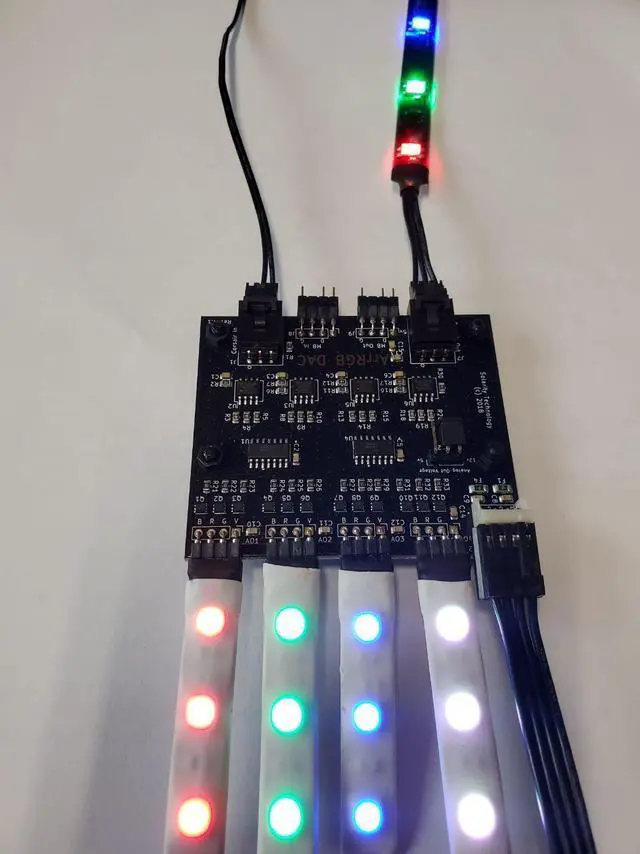 - Motherboard headers that have addressable RGB headers that match the header of the ArrRGB DAC