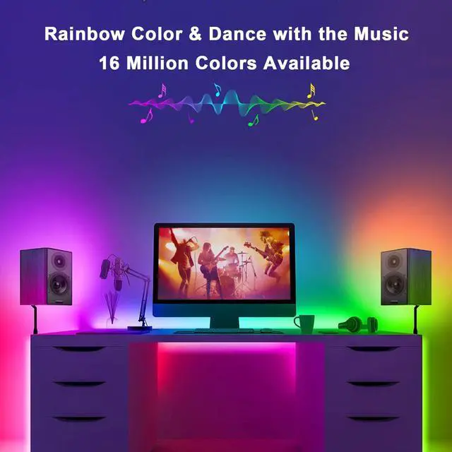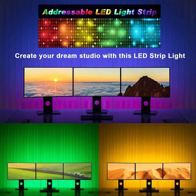 30+ Unique Dynamic Lighting Mode: Unlike other rgb led strips, our upgraded design by adding IC in the light strip, our led strips are addressable, you can get 30+ colorful dynamic modes that other led strips can't do, such as rainbow, color wave, color flow, color jump, color shift and etc.