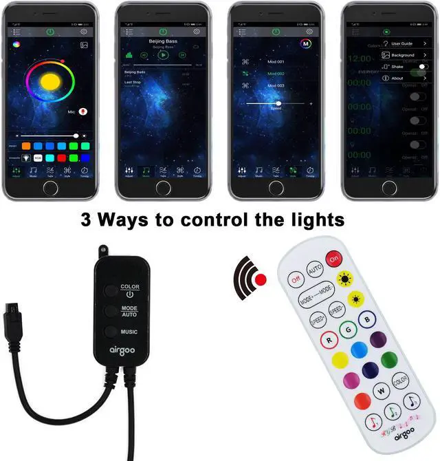 2. Use app, remote or controller to choose music mode, 3 Unique Music Mode suit any type of music, including slow, relaxing tunes and dance music.