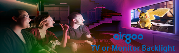 Airgoo App control LED TV backlights, light up whole wall behind TV.The tv light strip easily lights up 40-60inch TV, create a home theater atmosphere.