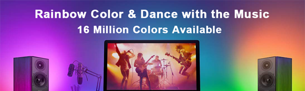 Multi colors offer various atmospheres, provide you with the greatest experience. Can be mounted on TVs, PCs, home theaters or other display screens.