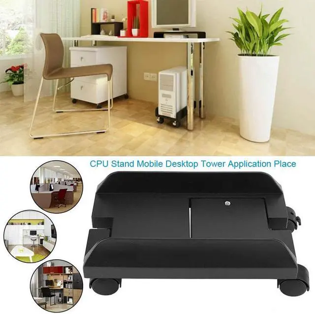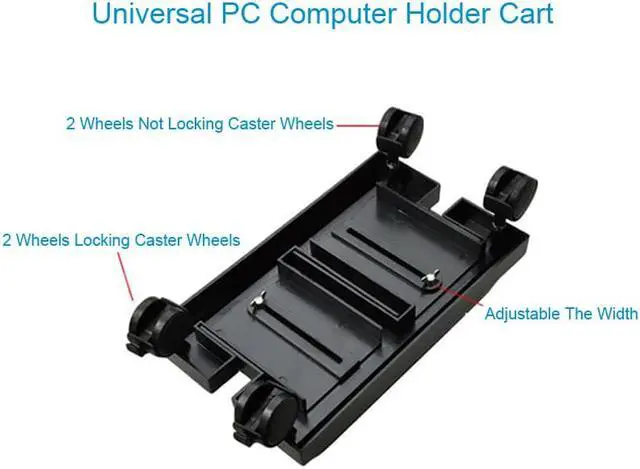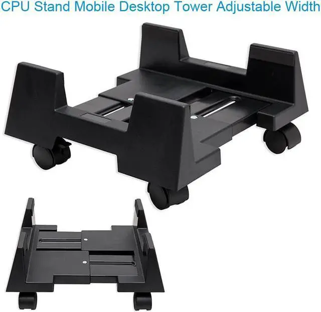 Designed: CPU Stand Carefully designed, the rabbit ear screw adjustment width is more worry-free and effortless, adjustable width 6 to 10 Inches, suitable for computers of different sizes. CPU Stand Mobile Desktop Tower Good quality: Reinforcement, durable, waterproof, and high stability.