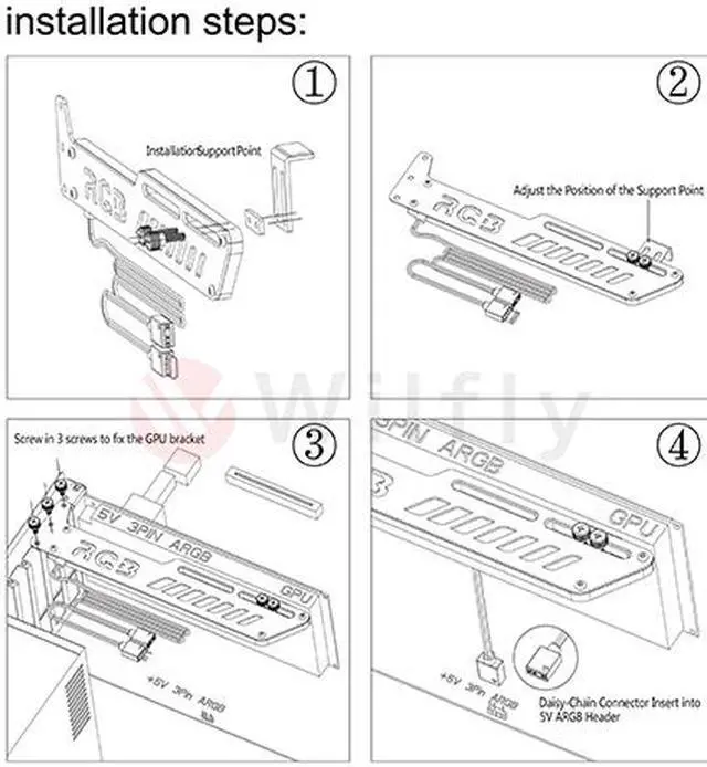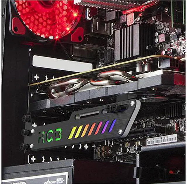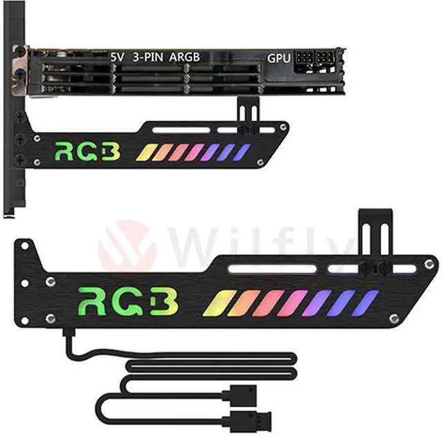 GPUCH01- GPU holder 5V 3-Pin Colorful RGB Graphics Card GPU Support Video Card Holder Bracket, Video Card Sag Holder/Holster Bracket, Anodized Aluminum, Adjustable Length and Height Support.