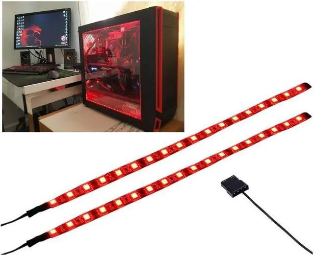 PC LED Light Strip Computer Case Lighting White with Magnetic Back, Molex Connector, 2pack LED Strip for PC Case Lighting Kit (30cm,18leds,S Series,Red)