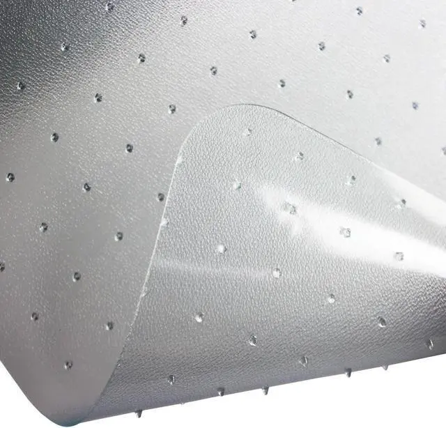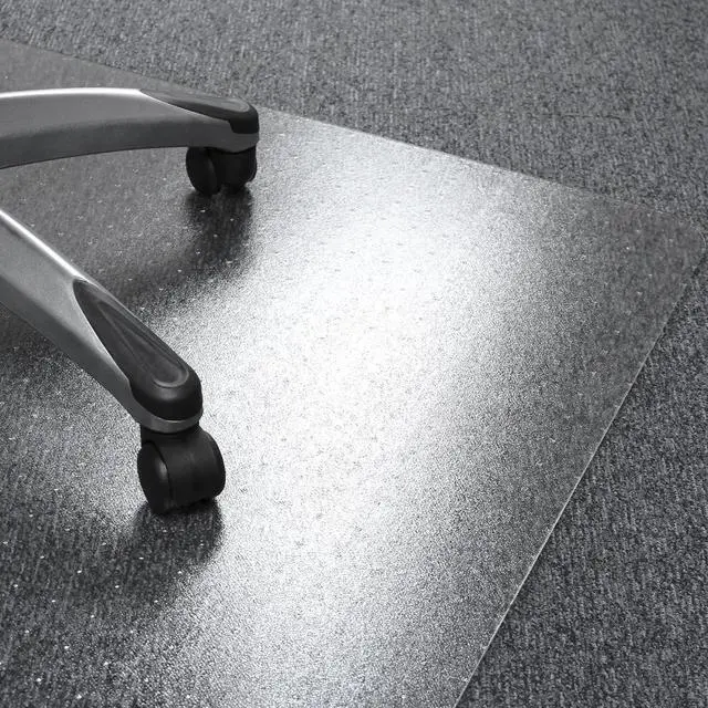 Carpet mat. Sizes and colors may vary slightly. For low, medium pile and plush carpets. 100% recyclable. Incredibly tough. Clarity and durability. Provides ergonomic benefits for chair. Easy glide movement. Reduced leg fatigue. Gripper back. 2.3 mm thickness. Made from polycarbonate. Clear finish. No assembly required. 48 in. L x 48 in. W (7.94 lbs.). Carpet protection mat for use in the home or office to prevent carpet wear caused by chair casters. Due to the nature of Thermoplastics, during the cooling process the size of the products will change to some extent as polymer changes from its plastic phase to solid. This process leads naturally to size and weight variances, these average about 5%.
