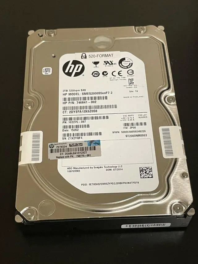 (NOT FOR HOME PC!) HP 746841-002 / Seagate ST2000NM0063 2TB 3.5in LFF 6Gbps 7.2k FIPS 512n SAS HDD