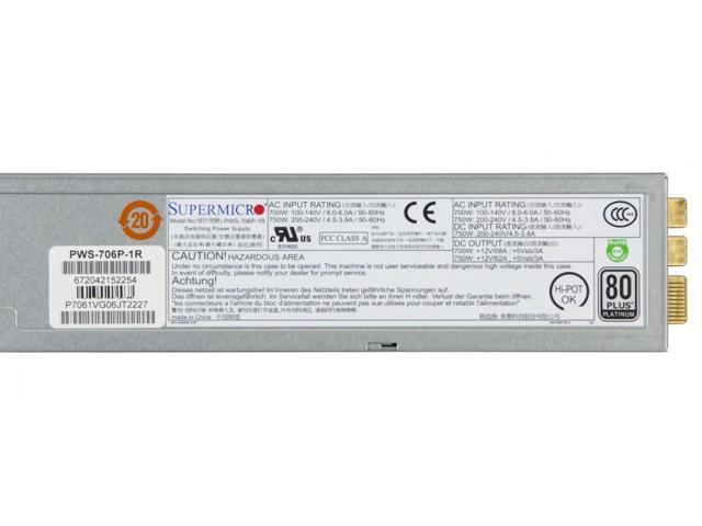 Supermicro PWS-706P-1R 1U 700/750W Single Output Power Supply Platinum level, 54.5mm width