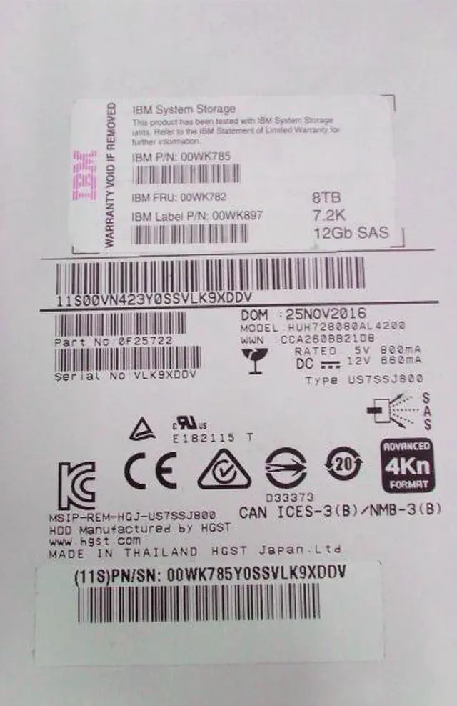 • IBM 8TB 00WK785 7200RPM SAS 12Gbps 3.5inch NL Hard Drive
