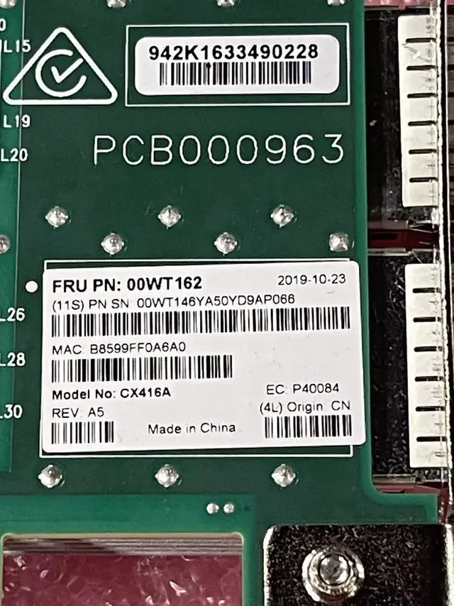 00WT162 IBM EC3L Mellanox ConnectX-4 EN Dl Pt 100 Gigabit QSFP28 PCI-E3