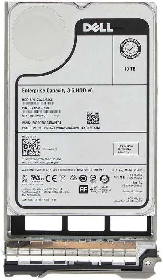 • Dell 0YF87J 10TB 7.2K 3.5" NL SAS 12Gbps 512e Hot-Plug Hard Drive