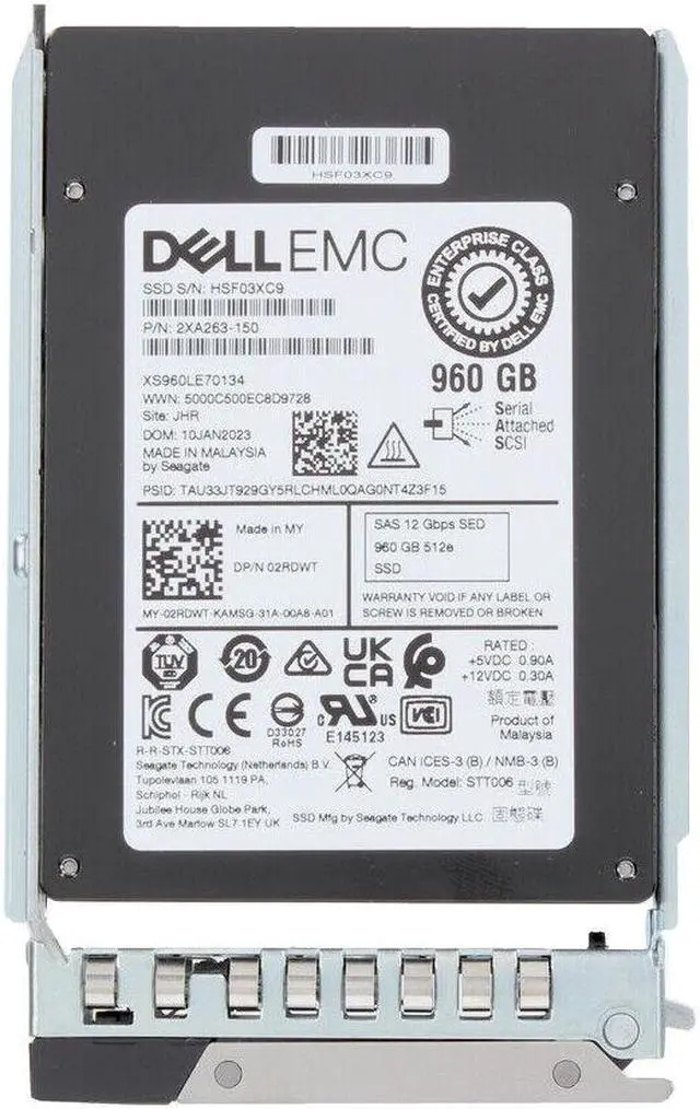 • Dell 2RDWT 960gb SED SAS-12Gbps Mixed Use 3DWPD 2.5inch Hot-Plug SSD