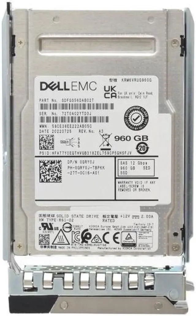 • Dell GRY0J 960GB SED SAS-12Gbps Read Intensive 1DWPD 2.5Inch Hot-Plug SSD