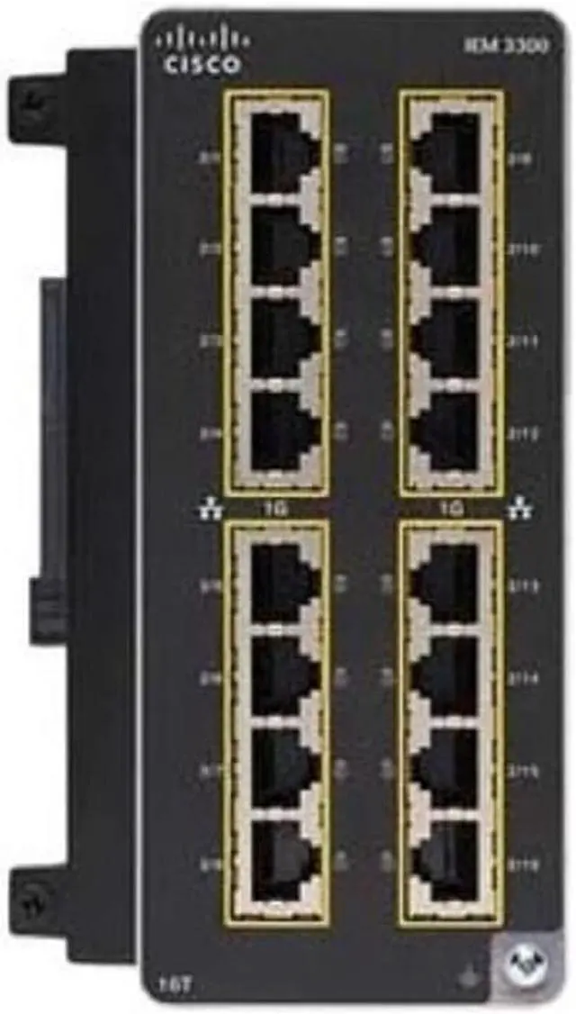 * Application/Usage: Data Networking<br /> * Product Type: Expansion Module<br /> * Interfaces/Ports Details: 16 x 1000Base-T<br /> * Product Type: Expansion Module<br /> * Compatibility: <p>Cisco Catalyst IE3300 Rugged Series Switches</p><br /> * Interfaces/Ports Details: 16 x RJ-45 1000Base-T Network LAN<br /> * Limited Warranty: 5 Year<br /> * Network Technology: 1000Base-T<br /> * Product Name: Catalyst IE3300 Rugged Series Module, 16 Non-PoE Copper<br /> * Network Technology: 1000Base-T<br /> * Product Line: Catalyst<br /> * Brand Name: Cisco<br /> * Product Series: IE3300<br /> * Brand Name: Cisco<br /> * Ethernet Technology: Gigabit Ethernet<br /> * Product Family: Catalyst IE3300<br /> * Media Type Supported: Twisted Pair<br /> * Ethernet Technology: Gigabit Ethernet<br /> * Media Type Supported: Twisted Pair<br />* Product Type: Expansion Module<br /> * Interfaces/Ports Details: 16 x 1000Base-T<br /> * Network Technology: 1000Base-T<br /> * Brand Name: Cisco<br /> * Ethernet Technology: Gigabit Ethernet<br /> * Product Family: Catalyst IE3300<br /> * Media Type Supported: Twisted Pair<br />