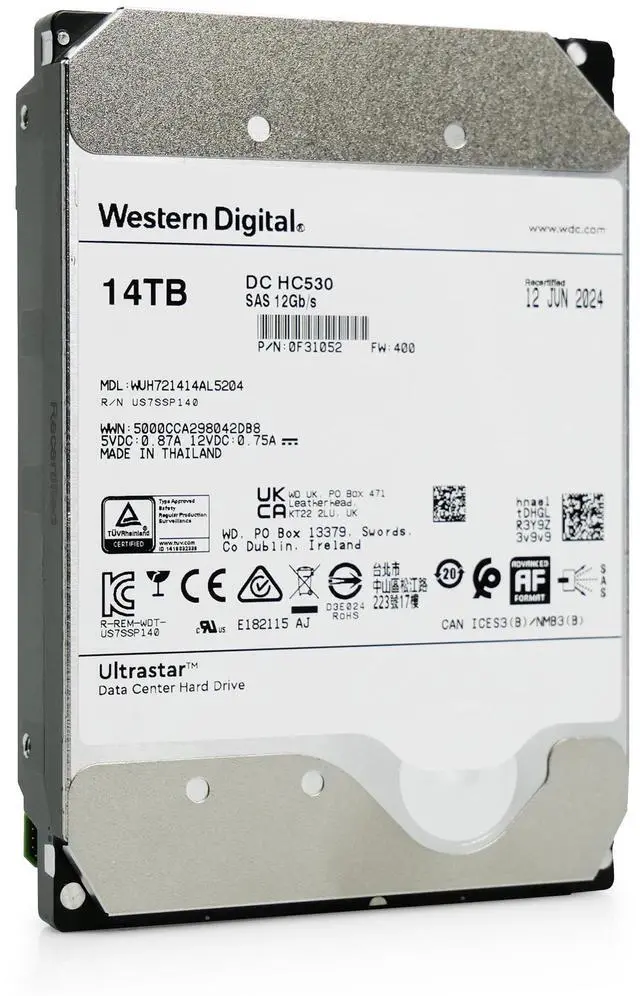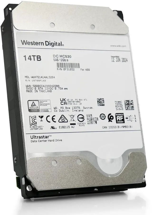 Western Digital Ultrastar DC HC530 14TB 7,200 RPM SAS 12Gb/s 3.5in Enterprise HDD - WUH721414AL5204 0F31052