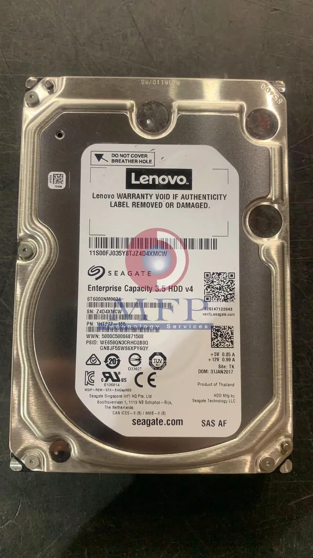• 00FJ035 LENOVO ST6000NM0034 SEAGATE ENTERPRISE 6TB SAS 12G 72K 3.5" HDD ST6000NM0034