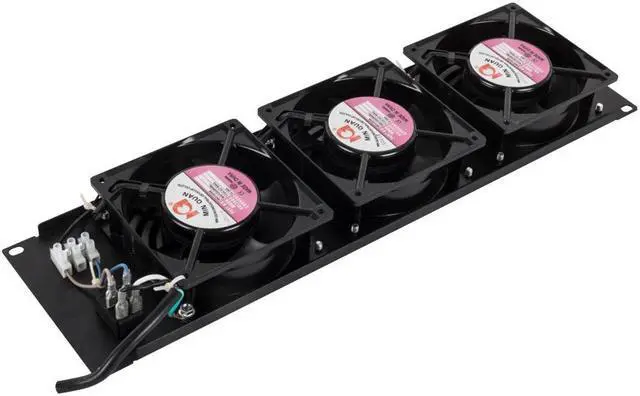 The RackSolutions 3U Horizontal Fan Panel is designed to keep your rack-mounted equipment cool and running efficiently. Compatible with any EIA standard 19" 2Post or 4Post server rack, this fan panel takes up just 3U of space and features three powerful 120mm fans that push hot air out of the rack, enhancing cooling efficiency and helping you meet your PUE (Power Usage Effectiveness) goals. Operating the fans is simple with the front-mounted switch, allowing you to power them on and off as needed. The fan panel is easy to install, plugging directly into a rack-mounted PDU with a 6 ft cable and a NEMA 5-15P plug.