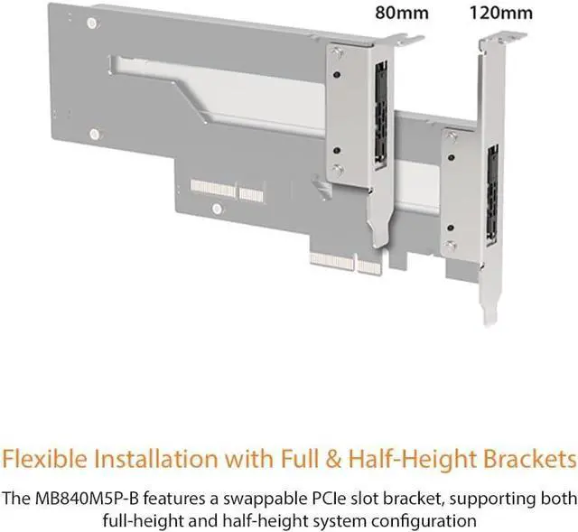 The MB840M5P-B features a swappable PCIe slot bracket, supporting both full-height and half-height system configurations.