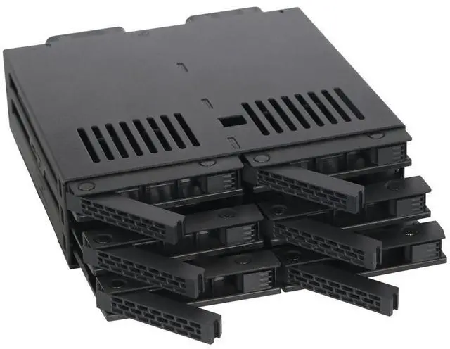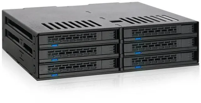 The MB326SP-1B transforms a single 5.25 bay into six individually hot-swappable 2.5 drive bays. Supporting SATA III 6Gbps and single-channel SAS drives (SAS host required), this enclosure is ideal for building compact RAID arrays or expanding high-capacity NAS volumes. With the ability to power all six drives using only two 15-pin SATA power connectors, cable clutter is minimized allowing for cleaner builds and improved airflow.
