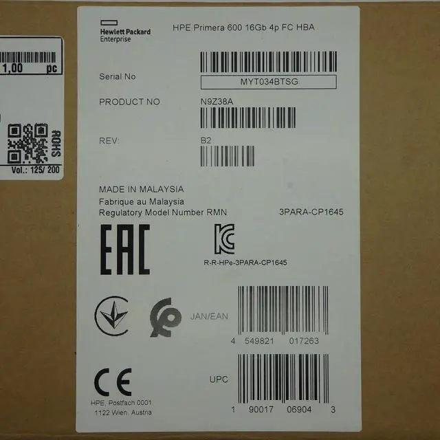 This is anKEY_TAB HPE Primera 600 16GB 4-Port Fibre Channel Host Bus Adapter N9Z38A. It comes exactly as pictured and does not include any additional parts or accessories.