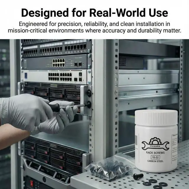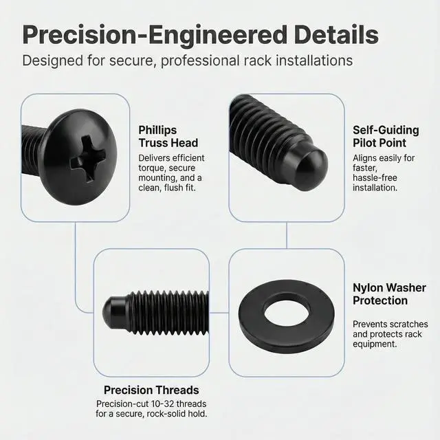 Universal Rack Compatibility: Precision 10-32 threaded rack screws designed for server racks, network racks, enclosures, cabinets and audio rack mounting with a secure, vibration-free hold.