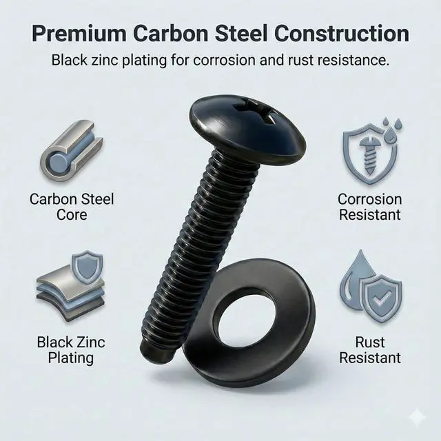 High-Quality Material: Phillips truss-head rack screws are made of durable carbon steel, providing exceptional strength and corrosion resistance, ideal for long-lasting performance in network, server, and audio rack installations.