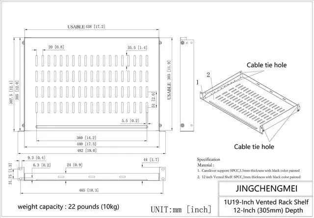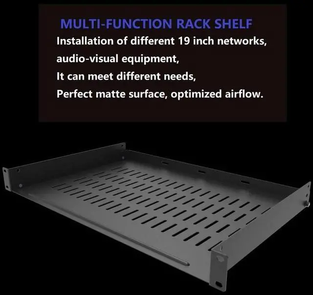 This 12-inch Universal Cantilever Vented 1U Rack Tray is specially for customers who don't need lip wasting the limited space. This 1U Server Rack Shelf is with no lip at the front. Meanwhile, we add an stiffener at the front for adding the shelf strength and weight capacity. The upside back lip can prevent objects from falling.