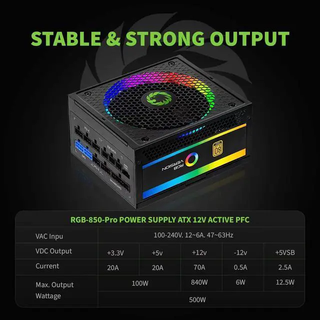 Fully Modular850 watt power supply with all black module cables reduce the confusion of cables' management.