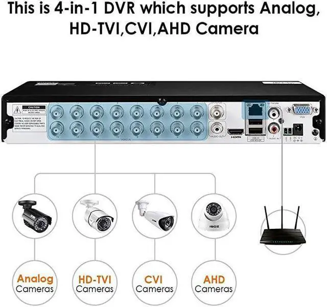 **********[ 4-in-1 16 Channel DVR ] __ Hybrid Capability 4-in-1 16 Channel 1080N CCTV DVR Recorder, with self-adaptive technology, it supports 4 kinds of camera models: 960H Analog, 720P/1080P AHD, 720P/1080P TVI and CVI. (2TB Security Grade Hard Drive Included) *****[ Local or Remote Access Anytime & Anywhere ] __ View and control your security system locally by connecting the system to a monitor, or via free Client software on Windows or Mac, or via iOS & Android APP ( Smart ) on mobile devices remotely*****[ Advance Motion Detection & Alert Push ] __ You can customize motion detection area in each camera to minimize false alerts. Instant notifications and email alerts will be pushed to your phone directly as long as the cameras detect moving objects*****[ Customize Each Camera with Different Record Modes ] __Our NVR offers 4 kinds recording modes to meet your needs: Record footage continuously; Record during scheduled times; Only record when detect motion; Recycle record. You can c