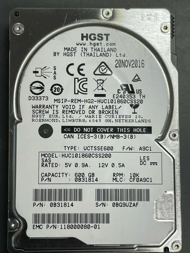 (NOT FOR HOME PC!) HGST HUC101860CSS200 0B31814 600GB 10K RPM SAS 2.5" ISE Enterprise HDD