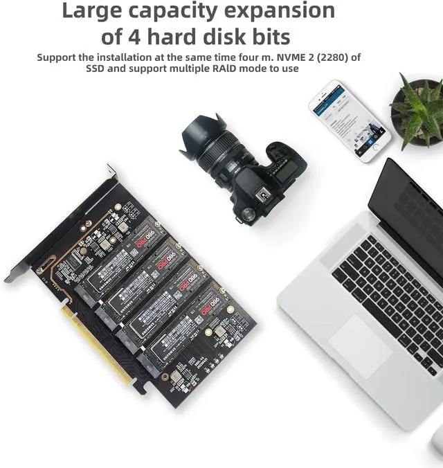[Important before purchase] The motherboard must support PCIe split(Bifurcation) function and be able to set PCIe X4X4X4X4 or 4X4 mode; the motherboard supports PCIe RAID function (the number of PCIe split channels varies from motherboard, some motherboards PCIe RAID is X8+X4+X4).