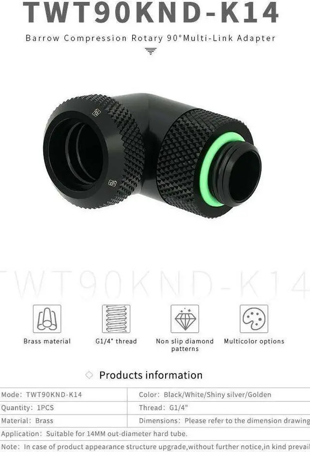 • G1/4" 90 Degree Rotary Multi-Link Fitting for 14mm OD Rigid Tubing