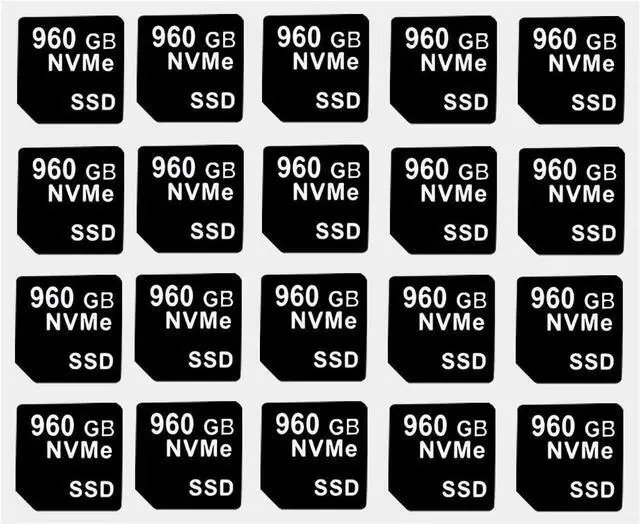 "960GB, NVME, SSD" labels ensure quick recognition of drive capacity and type, reducing setup errors in server environments.