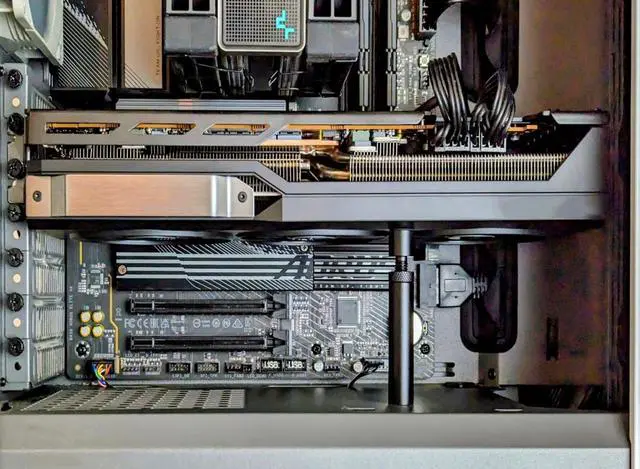 Upgraded heavy-duty GPU support bracket As graphics cards continue to become larger and heavier, a graphics card support is needed to prevent the graphics card from sagging and causing damage to the motherboard or graphics card.