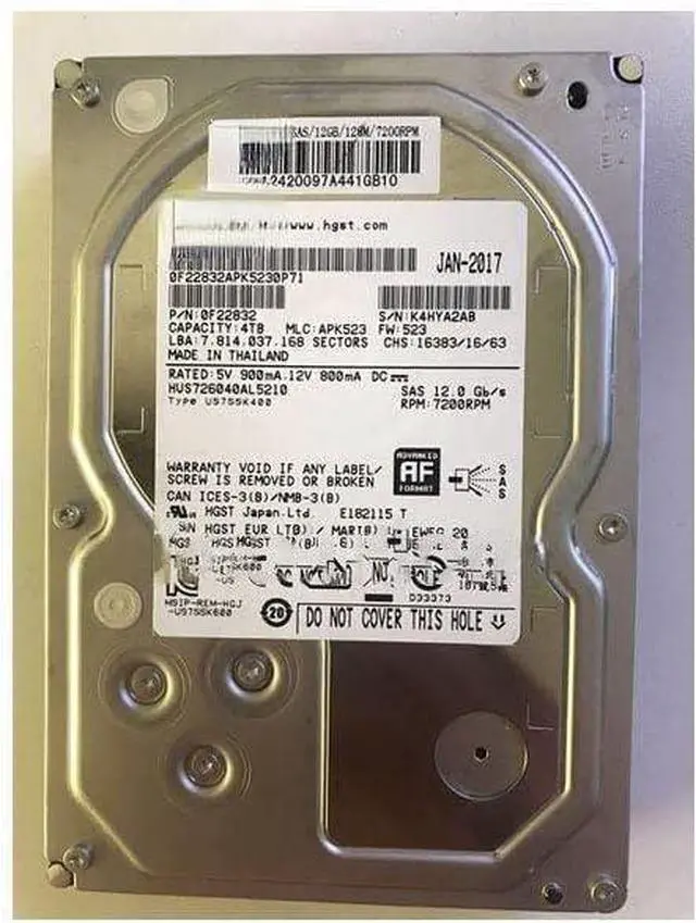 • (NOT FOR HOME PC!) for HGST HUS726040AL5210 4T 7200 RPM 128 SAS12Gb/s Enterprise Hard Drive