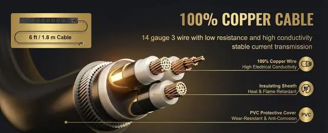| Wire Gauge | Heavy-Duty 14AWG Copper Wire |